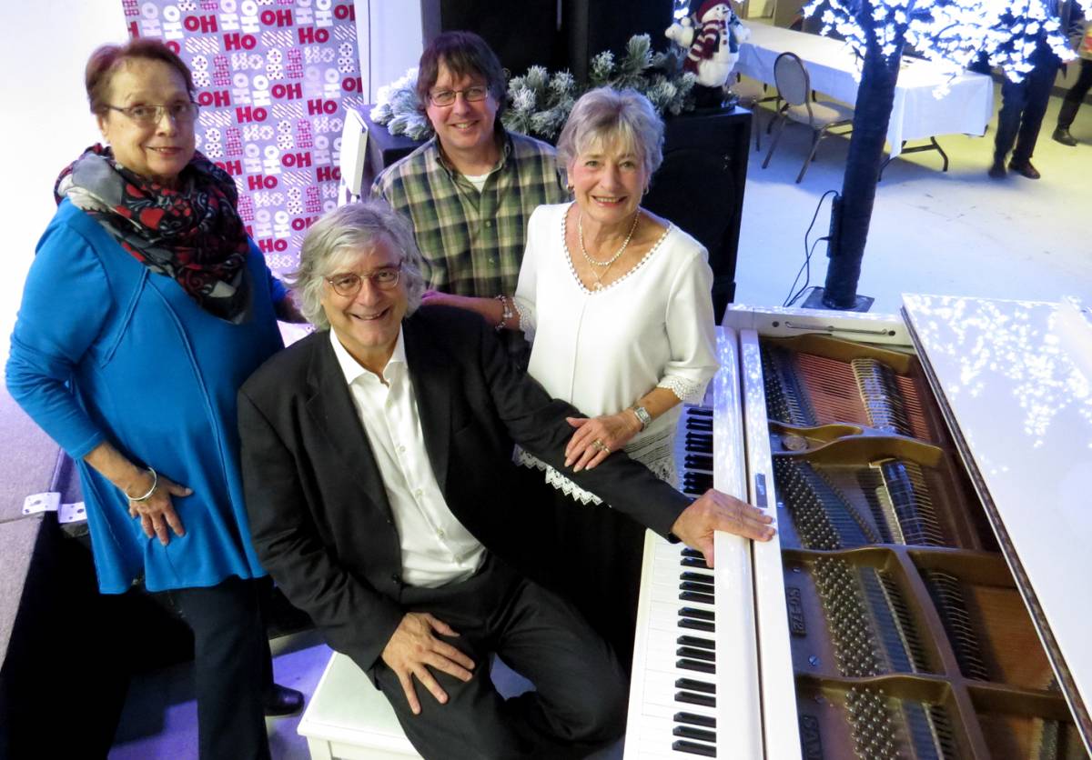 Pierre Jasmin (au clavier), en compagnie de Ghislaine Larivière, présidente de la TCARM, Jean-Marc Lord, directeur général du Comité de Solidarité/Trois-Rivières, ainsi que Jocelyne Chagnon, conjointe de feu Brian Barton.