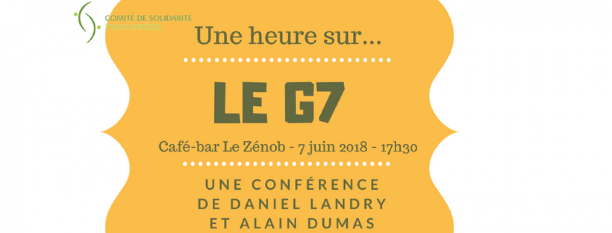 Vous souhaitez en savoir plus sur les enjeux qui entourent ce sommet, qui mobilisera également les organisations altermondialistes de la société civile (https://bit.ly/2jO1Sfr) ? Ne manquez pas ce rendez-vous avec Alain Dumas, professeur d'économie au Cégep de Trois-Rivières, et Daniel Landry, professeur de politique et de sociologie au Collège Laflèche.